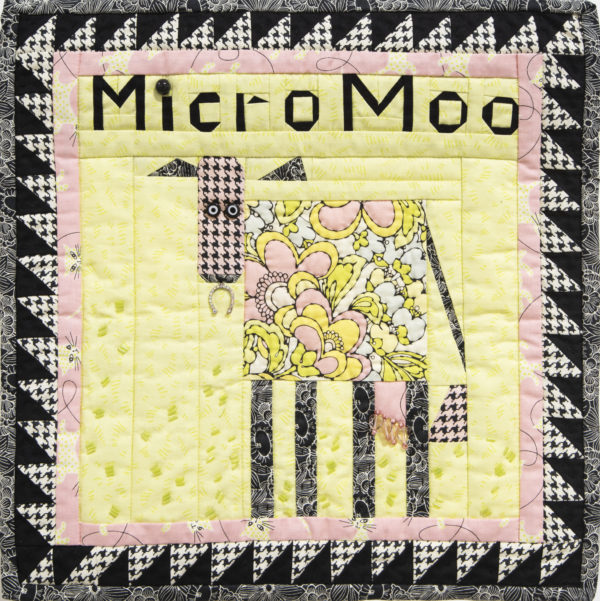 Again, seeing how small I could get, making my cow pattern one-eighth the original size, and using only one designer’s fabric line.