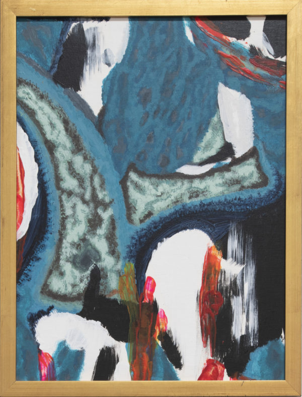 This began as a blow-up from another mixed-media piece. The mint and aqua areas representing tropical water and land. It’s unrecognizable from its original format, and that’s the point!